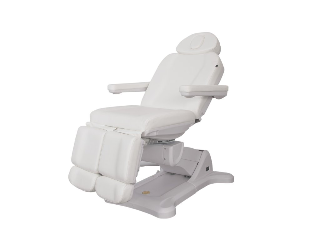 Luxus pedikűr szék -vel nagyon stabil alap és magas kényelem. 3 motorok automatikusan ellenőrizni mindent mozgások (Magasság, háttámla és székhely).Ülés forog a tengelye körül o 240 ° így biztosítva szükséges űr dolgozni i v a legkisebbek szobák. Függetlenül manuálisan állítható lábak garantálja optimális használat számára pedikűrös. Megfordítható vállak és állítható fejtámlák. Fehér PU kárpitozás magas minőség és easy tisztítással.