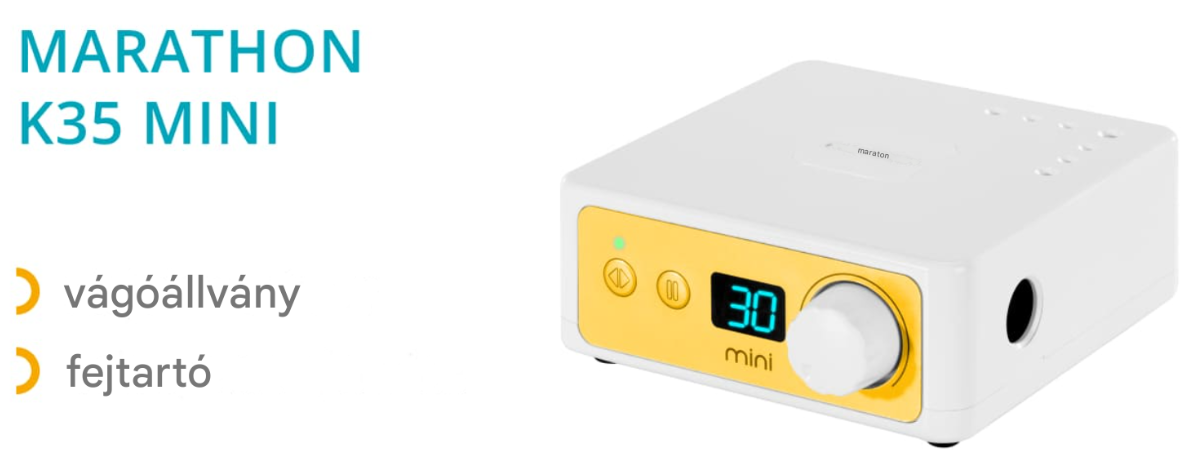 A kiváló minőségű Saeyang Marathon K35 mini körömreszelő egy praktikus eszköz, amely lehetővé teszi a köröm és a körömágybőr precíz előkészítését, felkészítve azokat a további kezelésekre. A készülék használata jelentősen leegyszerűsíti a korábbi körömformázás maradványainak eltávolítását . A jól kiegyensúlyozott fej, a kompakt méret, az átgondolt funkcionalitás és a számos elérhető opció ideálissá teszi ezt a reszelőt professzionális használatra, különösen a mobil szolgáltatásokban.