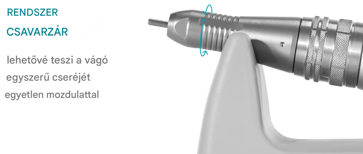 A funkcionális, precíz fej tökéletesen illeszkedik a kézbe , így biztosítva a magas szintű használati kényelmet. Egyszerűen használható Twist-Lock rendszerrel van felszerelve , amely lehetővé teszi a gyors és sima marócserét. Ezáltal a készülékkel való munkavégzés kivételesen egyszerű és intuitív , amit még az igényesebb felhasználók is értékelni fognak. Az elem jól kiegyensúlyozott és ergonomikus kialakítású , továbbá a fej rezgései is csökkentek , így még a marógéppel végzett hosszú munkaórák sem okoznak túlzott kézfáradtságot.
