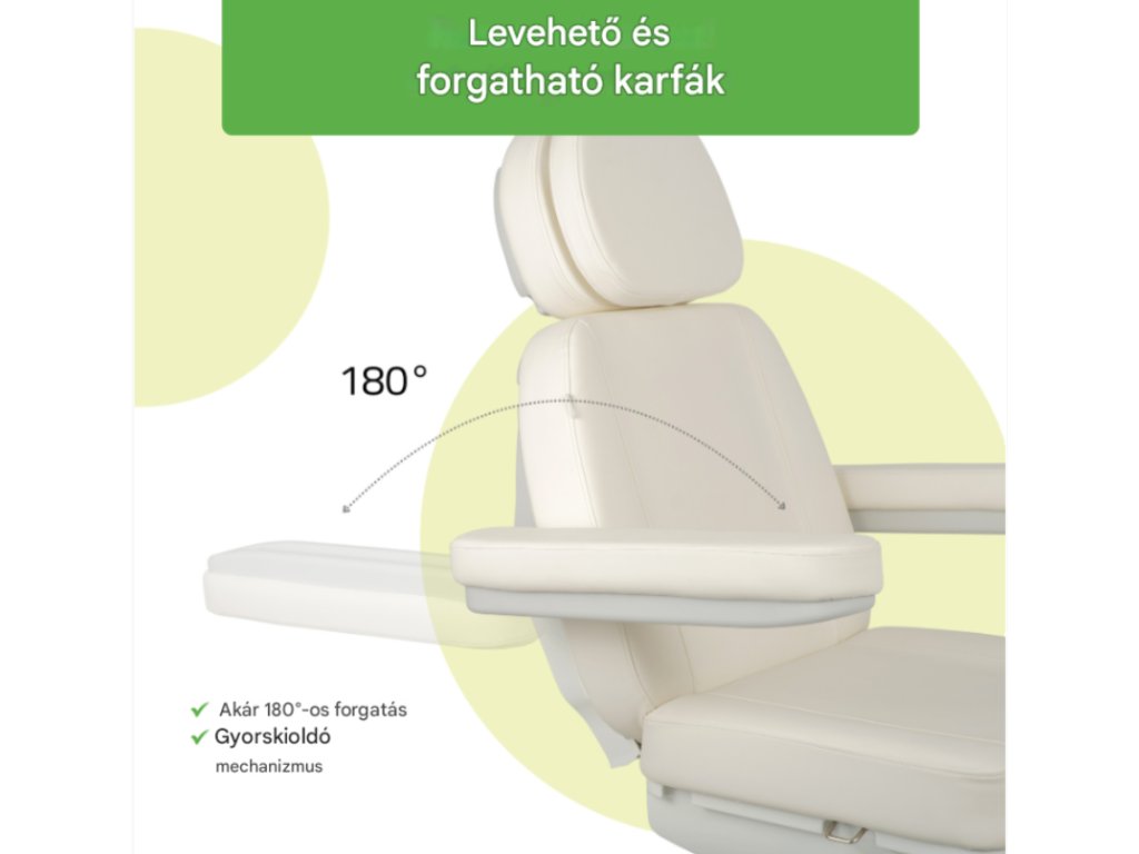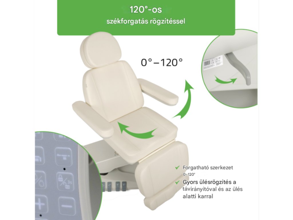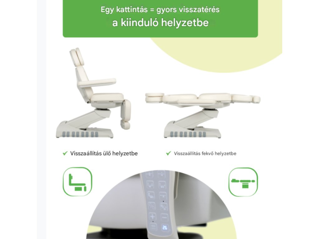 Ez a kliens kényelmének, a kozmetikus számára ergonomikus vezérlésnek és a kifinomult dizájnnak a tökéletes kombinációja.