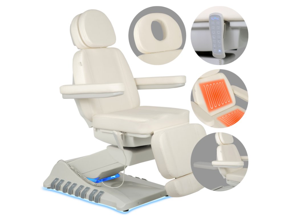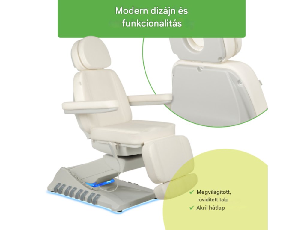 A Luxoria PRO 5 egy modern, teljesen elektromos vezérlésű kozmetikai szék, amelyet igényes kozmetikai klinikák, esztétikai gyógyászati rendelők és SPA központok számára terveztek.