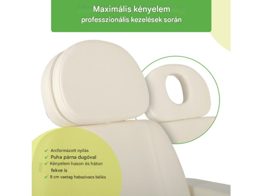 Arcra nyíló, párnás kialakítás – ideális hason fekvő helyzetben történő kezeléshez