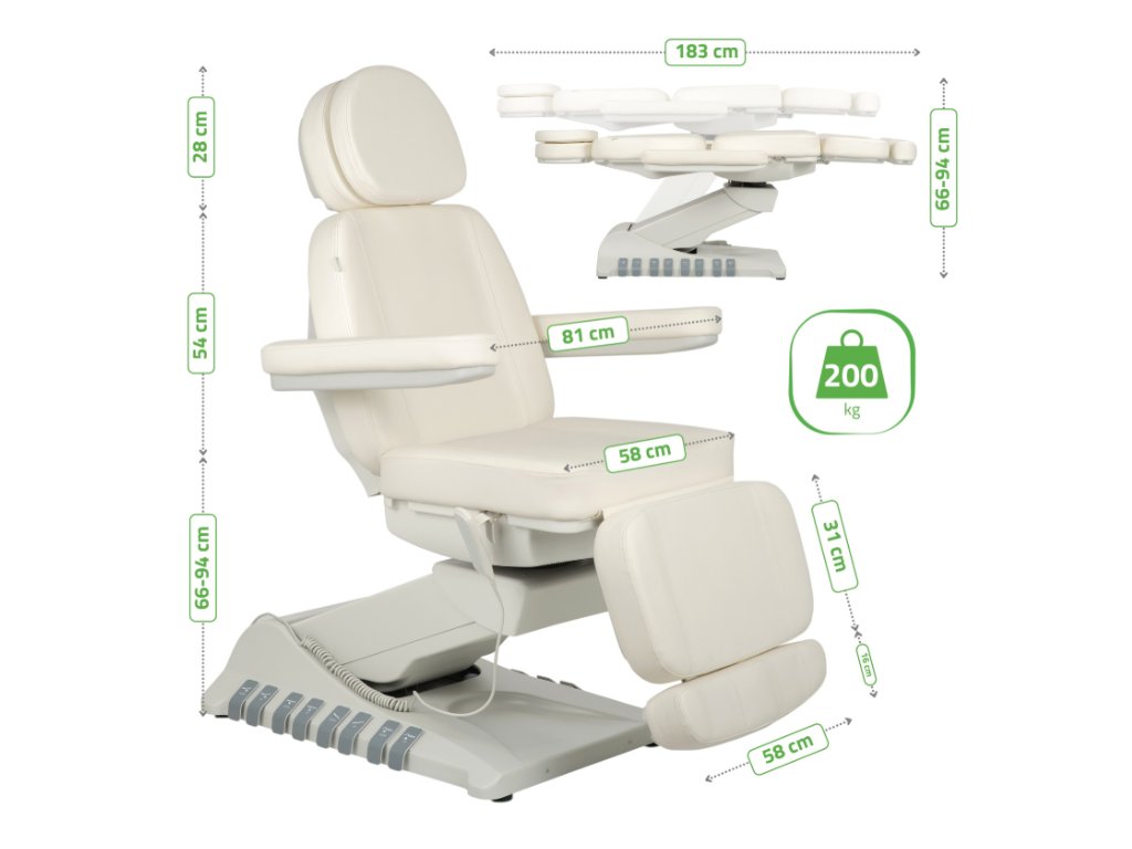 A Luxoria PRO 5 szépségfotel műszaki adatai: