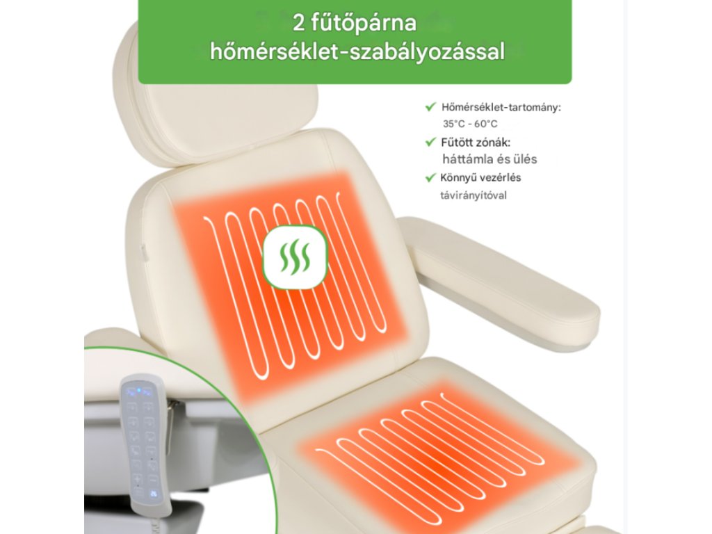 A fűtési funkció pihenést és kényelmet biztosít a hosszú beavatkozások során.