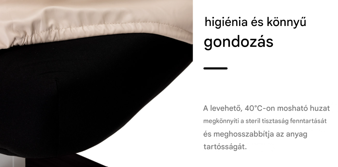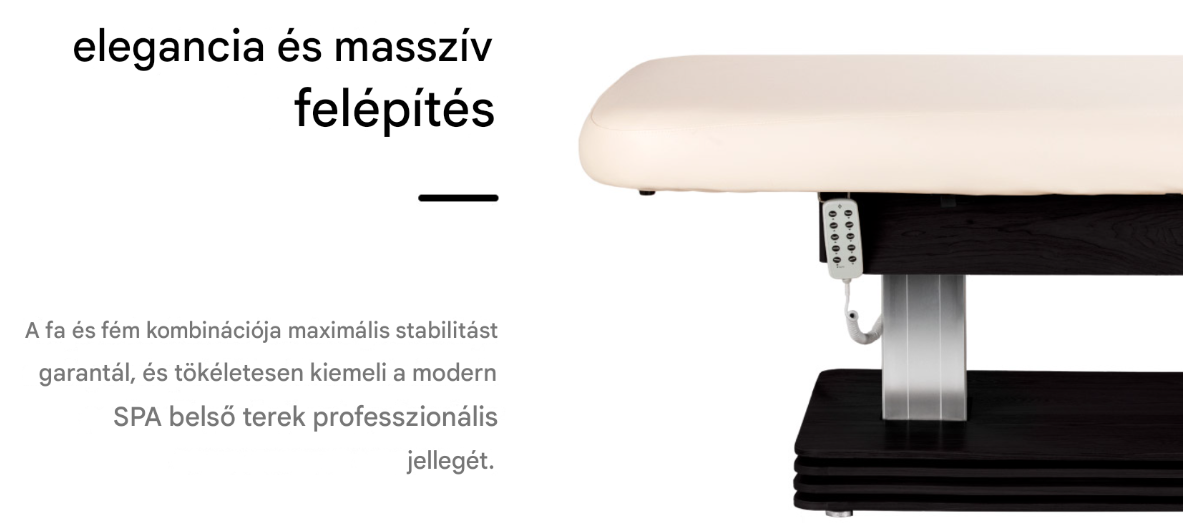 Ez a modern kezelőkanapé tömörfa és fém talppal maximális stabilitást és biztonságot nyújt a kezelések során. Tartós konstrukciója megbízható támaszt garantál , kényelmes körülményeket biztosítva a kozmetikai, szépségápolási, relaxációs és masszázskezelésekhez – mind a kliens, mind a szakember számára. A gondosan kidolgozott részletek és a visszafogott színek teszik ezt a masszázsszalonok és wellness-részlegek számára készült szépségkanapéot tökéletesen illeszkedővé az elegáns, professzionális belső terekbe. Esztétikája és masszív konstrukciója magasabb színvonalú szolgáltatást eredményez , erősíti a kliensek bizalmát, és növeli a szalonban kínált kezelések érzékelt értékét.
