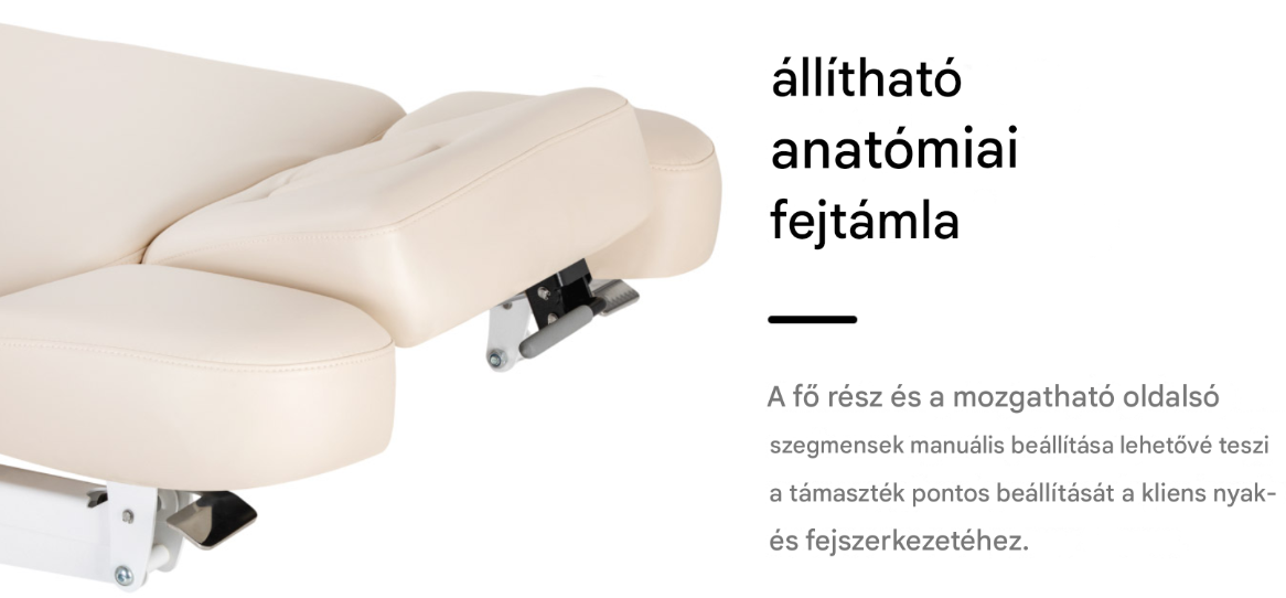 A fejtámlát a maximális ügyfélkényelmet és a szakember számára megfelelő funkcionalitást szem előtt tartva tervezték . A fő rész manuálisan állítható , így optimális fejtámaszt biztosít , míg az oldalsó részek fel-le mozognak, alkalmazkodva a kliens egyéni anatómiájához. Ez a megoldás biztosítja a kényelmes testtartást a kezelések során , fenntartja a helyes testtartást, és növeli mind a kliens, mind a kezelést végző személy kényelmét.