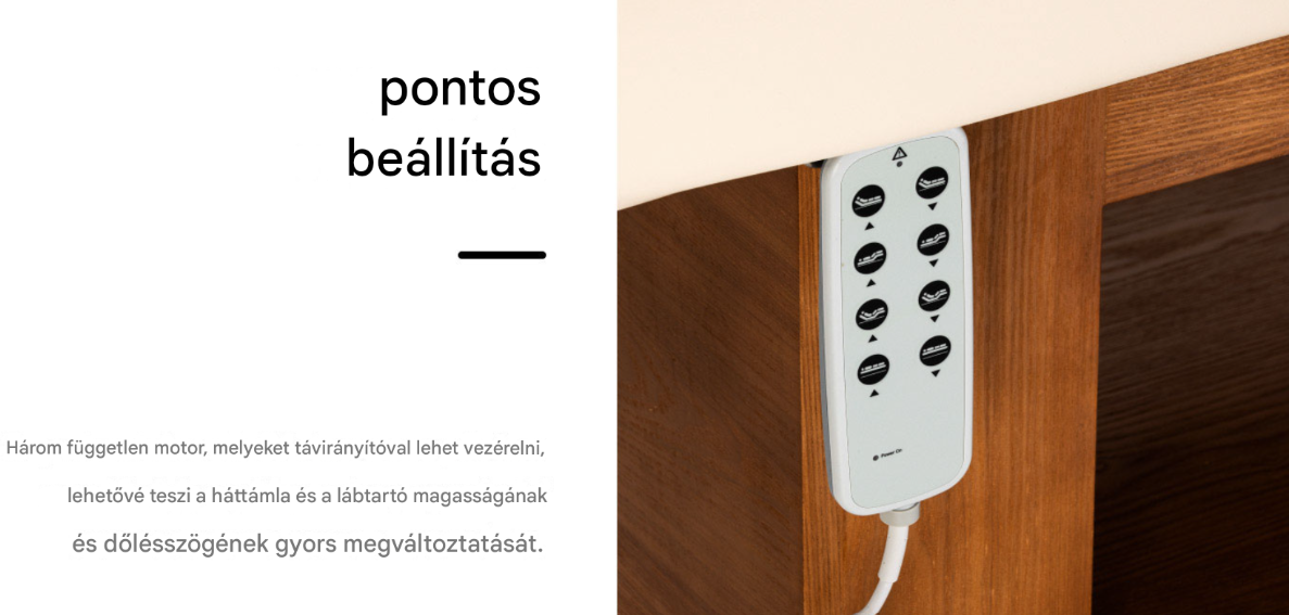 Az intuitív távirányító három dimenzióban teszi lehetővé a sima beállítást : magasság, háttámla és lábtartó. A 65 és 90 cm közötti magasságállítás lehetővé teszi a kezelő magasságához és az eljárás típusához való testreszabást. A széleskörű beállítási lehetőségek megkönnyítik az ergonomikus munkapozíció fenntartását , függetlenül a kezelő magasságától vagy az adott eljárástól. A háttámla és a lábtartó egyetlen gombbal történő egyidejű beállítása lehetővé teszi a gyors ülő, fekvő vagy fekvő helyzetbe állítást az eljárás megszakítása nélkül. A beállítások sima módosítása támogatja az ergonomikus munkafolyamatot és növeli a kliens kényelmét az eljárás minden szakaszában.