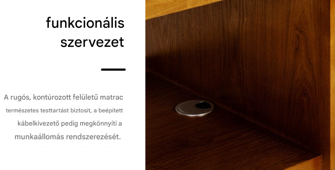 A kanapé kontúrozott felülete természetes, kényelmes testtartást biztosít, stabil és kényelmes támaszt nyújtva . A megfelelő szélesség és a ruganyos matrac kényelmes viseletet biztosít még hosszú kezelések és masszázsok során is. A nagyobb kényelem jobb kezelési élményt és magasabb színvonalú szolgáltatást jelent a szalonban. Egy további kartámasz fokozza a kényelmet hason fekvéskor , enyhíti a felsőtestre nehezedő nyomást és elősegíti a mély ellazulást. A beépített kábelrendezővel ellátott nyitott polc megkönnyíti a kiegészítők és kozmetikumok rendszerezését , segítve a munkaállomás rendezettségének fenntartását.