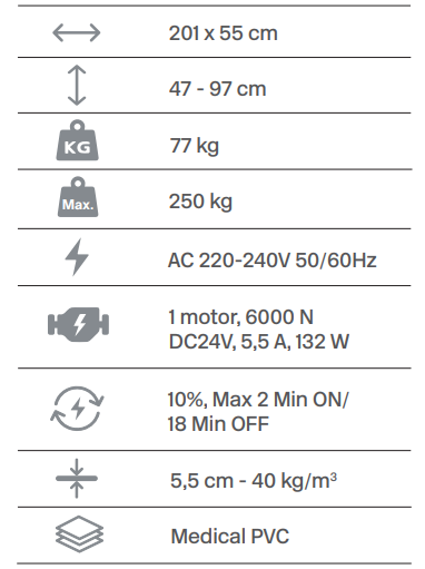 ‑ Állítható magasság 47 cm-től 97 cm-ig vízszintes helyzetben.