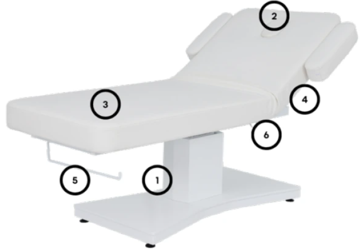 Multifunkcionális elektromos ágy fa talppal. Egyetlen motorral pontosan állítható a magasság, míg a háttámla manuálisan állítható gázlifttel. Tartalmaz egy nyakpárnát arckivágással, levehető kartámaszokat és beépített papírtekercs-tartót, így első osztályú ergonómiát és funkcionalitást kínál gyógyfürdők és szépségszalonok számára.