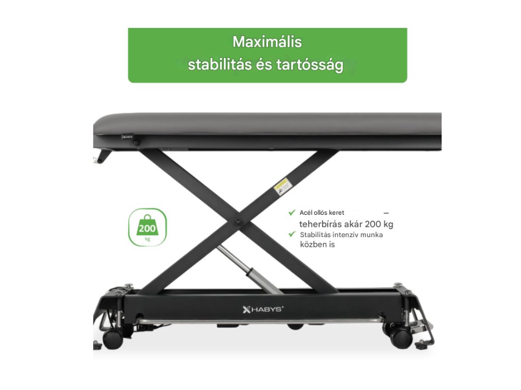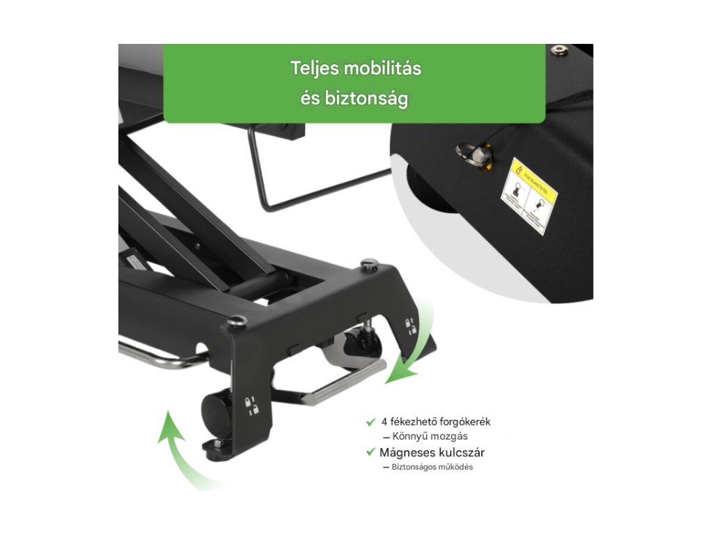 - Stabil acél ollós keret: Nagy tartósságot és biztonságot nyújt akár 200 kg-os terhelés mellett is.
