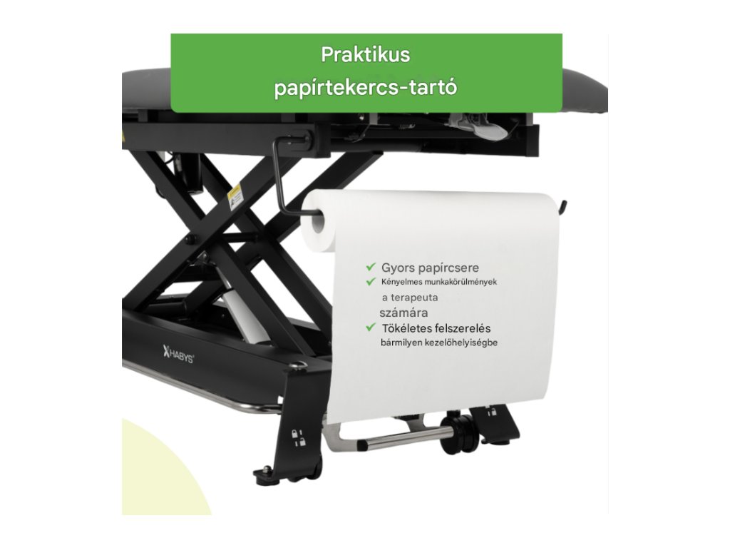 - Higiénikus papírtekercs-tartó: Praktikus funkció, amely lehetővé teszi a gyors papírcserét. Akár 60 cm széles tekercsekhez is alkalmas.