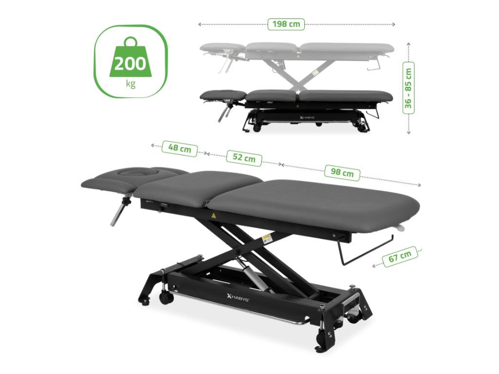 A páciensek kényelmét és a terapeuták ergonómiáját egyaránt szem előtt tartva tervezett X5 minden rész teljes állíthatóságát, sima elektromos magasságállítást és rendkívül stabil acélszerkezetet kínál. Pontos pozicionálást, biztonságos működést és intuitív kezelést biztosít, így megbízható választás azoknak a szakembereknek, akik teljes kontrollt várnak el a páciensek pozicionálása felett, és optimális munkakörülményeket várnak el.