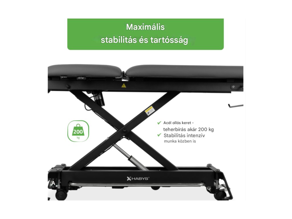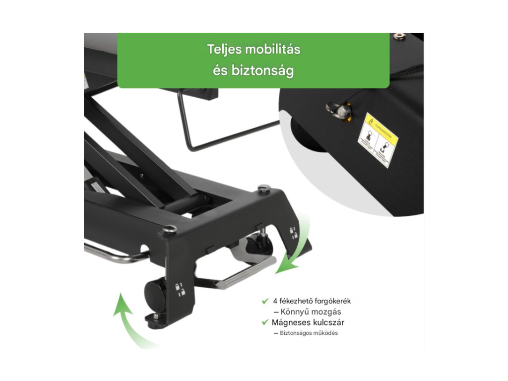 - Stabil acél ollós keret: Tartósságot és biztonságot biztosít, akár 200 kg teherbírással.
