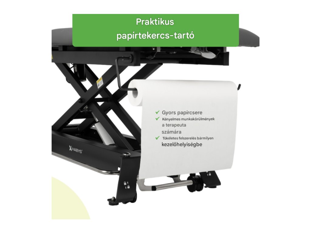 - Higiénikus papírtekercs-tartó: Praktikus kiegészítő, amely lehetővé teszi a gyors papírcserét. Akár 60 cm széles tekercsekhez is alkalmas.