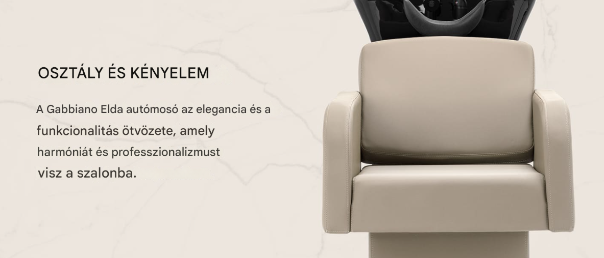 Az elegáns Gabbiano Elda hajmosó egység a funkcionalitást modern dizájnnal ötvözi. Lehetővé teszi az alapvető kezelések hatékony elvégzését – az előmosástól a festésen át a haj regenerálásáig. Átgondolt kialakítása kényelmet biztosít mind a fodrászok, mind a vendégek számára, míg a stílusos dizájn, az elegáns vonalak és a modern tálforma egyedi karaktert kölcsönöz a belső térnek, hangsúlyozva a szalon professzionalizmusát és biztosítva a kellemes vendégélményt.