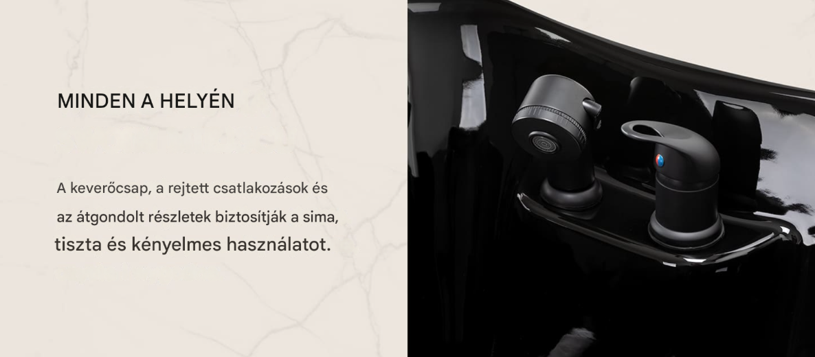 Az autómosó keverőcsappal van felszerelve, amely könnyű hozzáférést biztosít a meleg és hideg vízhez, így a hőmérséklet precízen állítható az egyéni vásárlói igényeknek megfelelően . A kézibeszélő praktikus felakasztási helye megkönnyíti a munkát, míg a speciális szűrővel ellátott leeresztő dugó lehetővé teszi a víz áramlásának szabályozását és a szalonban a magas higiéniai színvonal fenntartását. A vízcsatlakozás az alsó részen található , így a beszerelés diszkréten rejtve marad, hozzájárulva a munkaállomás esztétikájához és rendezettségéhez. Az autómosó ergonomikus kialakítása biztosítja a kényelmet a különböző kezelések során , a funkcionalitás és a részletek átgondolt kombinációja pedig még kényelmesebbé teszi a szalonban végzett napi munkát .