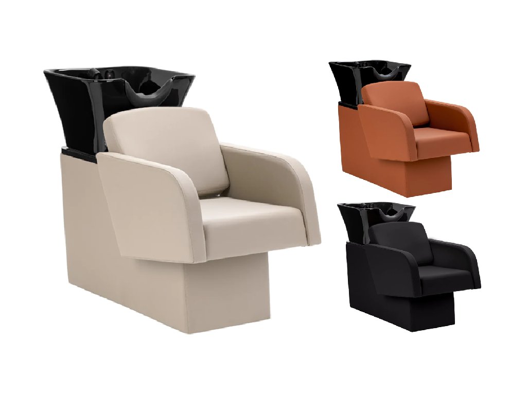 A fekete kerámia mosogató modern formájával és megfelelő mélységével hatékonyan megakadályozza a víz és a kezelések során használt termékek kifröccsenését , lehetővé téve a szolgáltatások széles skálájának kényelmes és hatékony elvégzését . A kontúrozott gallér és a ferde háttámla kényelmet és támasztást biztosít a hajmosás során , míg a fekete műanyag borítás védi a klienst a hideg kerámiafelülettől, biztosítva a kellemes élményt a kezelés során.