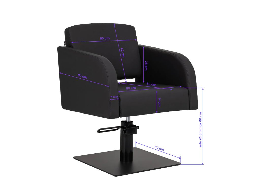 A Gabbiano Elda fodrászszék a minimalista dizájnt ötvözi a funkcionalitással és a mindennapi kényelemmel. Az áramvonalas vonalak könnyed és modern megjelenést kölcsönöznek , míg a stabil, szögletes, matt fekete alap tovább fokozza stílusát . A puha habszivacs bélés a puha tapintású, fekete árnyalatú műbőrrel kombinálva biztosítja a kényelmet még hosszú kezelések során is. A gondosan válogatott anyagok garantálják a tartósságot, a nedvességállóságot és a könnyű tisztíthatóságot . A szék tökéletesen illeszkedik mind a modern, mind a klasszikus enteriőrökbe, kiemelve a szalon professzionális jellegét .