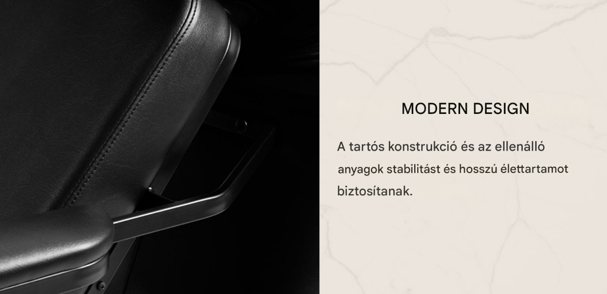 A kontúrozott ülés deréktámaszt és magas kényelmet biztosít , míg a kárpitozott karfák lehetővé teszik a váll megfelelő beállítását . A tartós, deformációálló hab a puha tapintású fekete műbőrrel kombinálva garantálja a kényelmet, a tartósságot és a könnyű karbantartást . Az autómosó modern kialakítása egyedi karaktert kölcsönöz a belső térnek , a teljes fekete szerelvények – csaptelep, zuhanyfej és a dedikált tömlők – pedig használatra kész szerszámkészletet biztosítanak .
