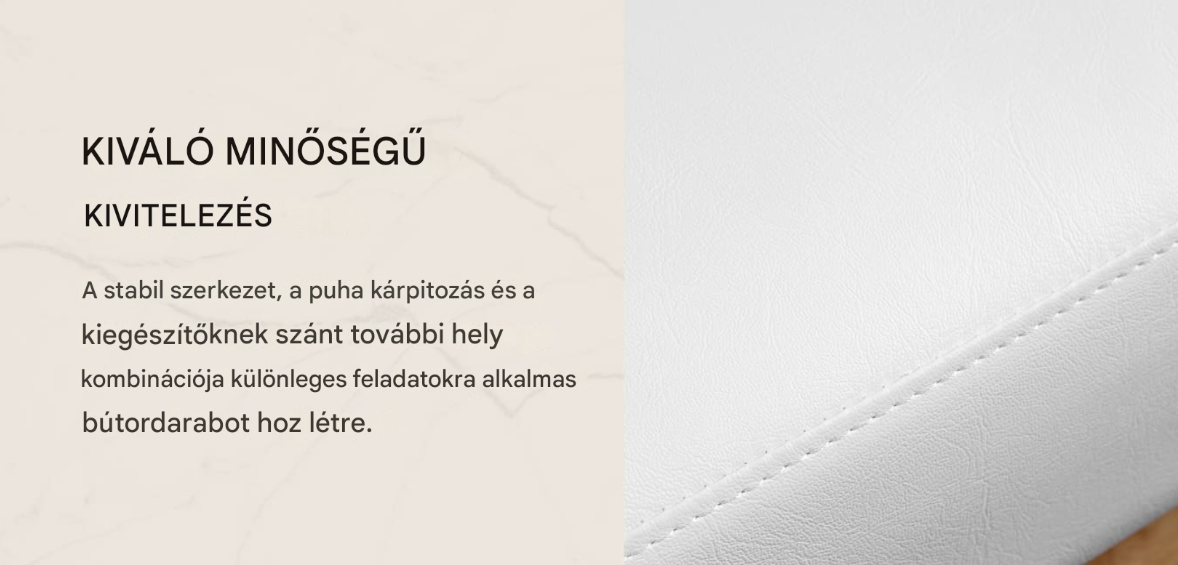 A Head Spa Bali nyugágy a funkcionalitás és a modern dizájn harmonikus keveréke . Stabil szerkezetét egy masszív váz erősíti, esztétikus fa elemekkel kidolgozva , amelyek melegséget és eleganciát kölcsönöznek a belső térnek. A robusztus konstrukció stabilitást és tartósságot garantál a hosszú távú használat során . A nyugágy ergonomikusan kontúrozott felülete puha, elegáns fehér árnyalatú műbőrrel van bevonva, ami maximális kényelmet biztosít a kezelések során, miközben a tisztítást is megkönnyíti. A nyugágy alatt található praktikus szekrény lehetővé teszi a kozmetikumok és kiegészítők kényelmes tárolását, így minden szükséges termék mindig kéznél van. A természetes fa, a puha műbőr és az ergonomikus kialakítás kombinációja teszi a Head Spa Balit stílusos és funkcionális bútordarabmá fodrászatok, gyógyfürdők és wellness központok számára. Ez a bútordarab a kényelmet az időtlen esztétikával ötvözi .