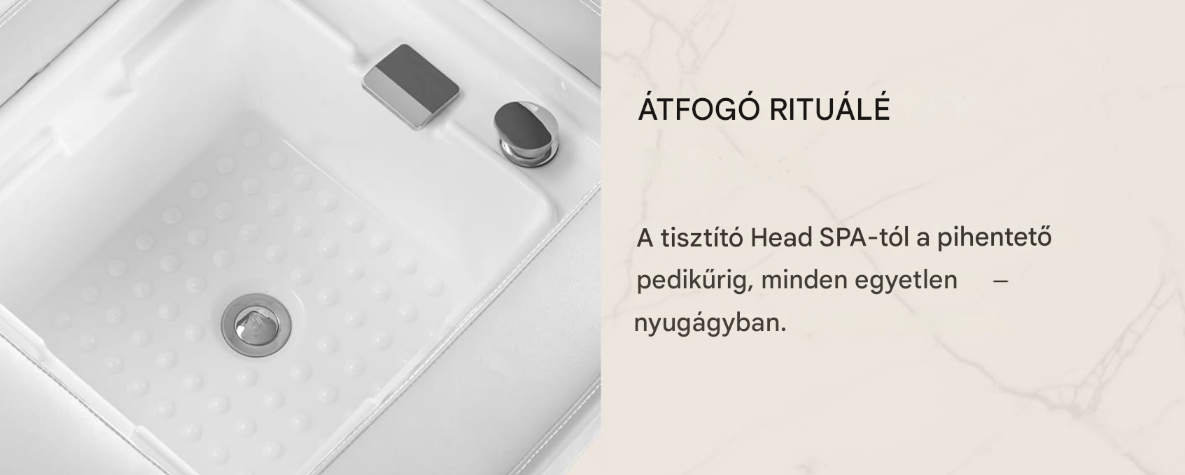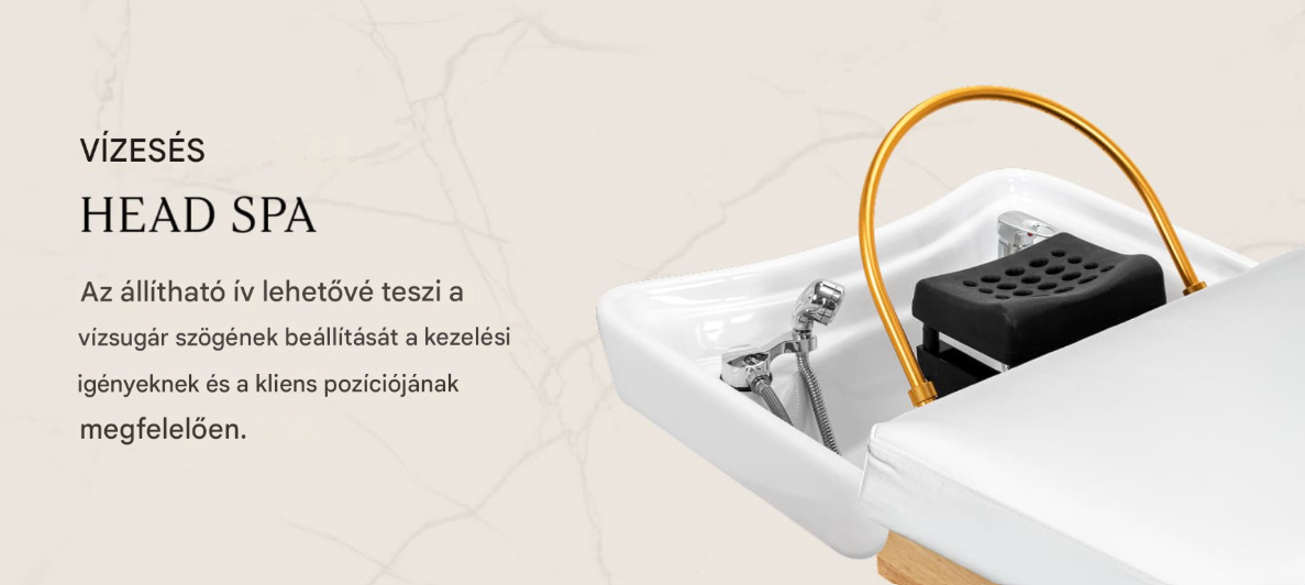 Egy speciális, állítható szögű ív vízeséshatást hoz létre, amely intenzíven tisztítja a fejbőrt és természetes masszázsként működik, javítja a vérkeringést, csökkenti a feszültséget és a stresszt . A precízen szabályozott vízáramlás támogatja a haj regenerálódását és intenzíven hidratálja a bőrt . Az állítható szögű vízesés mélytisztítást és ellazulást biztosít , enyhülést hozva olyan panaszokra, mint a fejfájás és a nyakmerevség. Az intelligens, zárt hurkú rendszernek köszönhetően az ív vizet szív a tálból, és újra felhasználja, folyamatos vízmasszázst biztosítva.