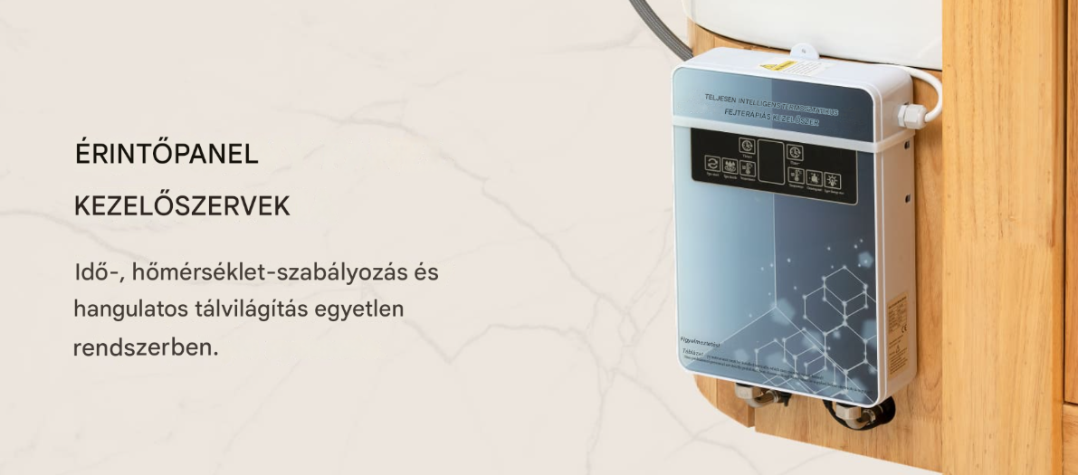 Az intuitív érintőpanel lehetővé teszi a kezelési paraméterek teljes körű ellenőrzését, biztosítva a könnyű használatot. Lehetővé teszi a működési idő és a vízhőmérséklet beállítását, valamint a beállítások folyamatos figyelését. A panel lehetővé teszi a fényterápia aktiválását is – a csésze megvilágítása pihentető légkört teremt, és hangsúlyozza a kezelés luxus jellegét. Ezenkívül a gőzterápiás készülék távirányítóval van felszerelve a kényelmes távvezérlés érdekében.