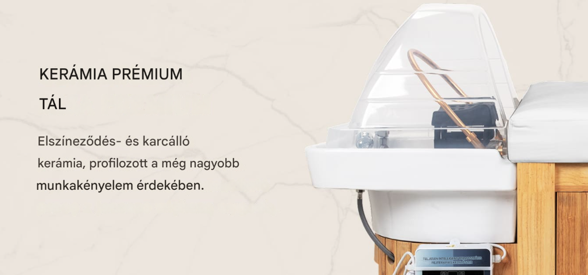A mély, fehér árnyalatú kerámia mosdótál hatékonyan csökkenti a víz és a kezelések során használt termékek fröccsenését , biztosítva a tisztaságot és a kényelmet . Tartós anyagból készült, a mosótál ellenáll az elszíneződésnek, a karcolásoknak és a sérüléseknek, sima felülete pedig kivételesen egyszerűvé teszi a tisztítást . Jellegzetes profilja nemcsak megkönnyíti a hozzáférést a szolgáltatást végző személy számára, hanem elegáns és modern megjelenést is kölcsönöz az autómosónak . Az esztétika és a funkcionalitás kombinációja emeli bármely professzionális tér színvonalát .