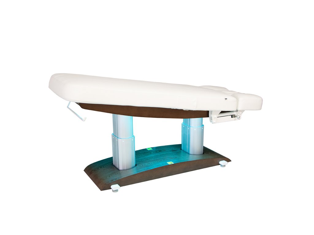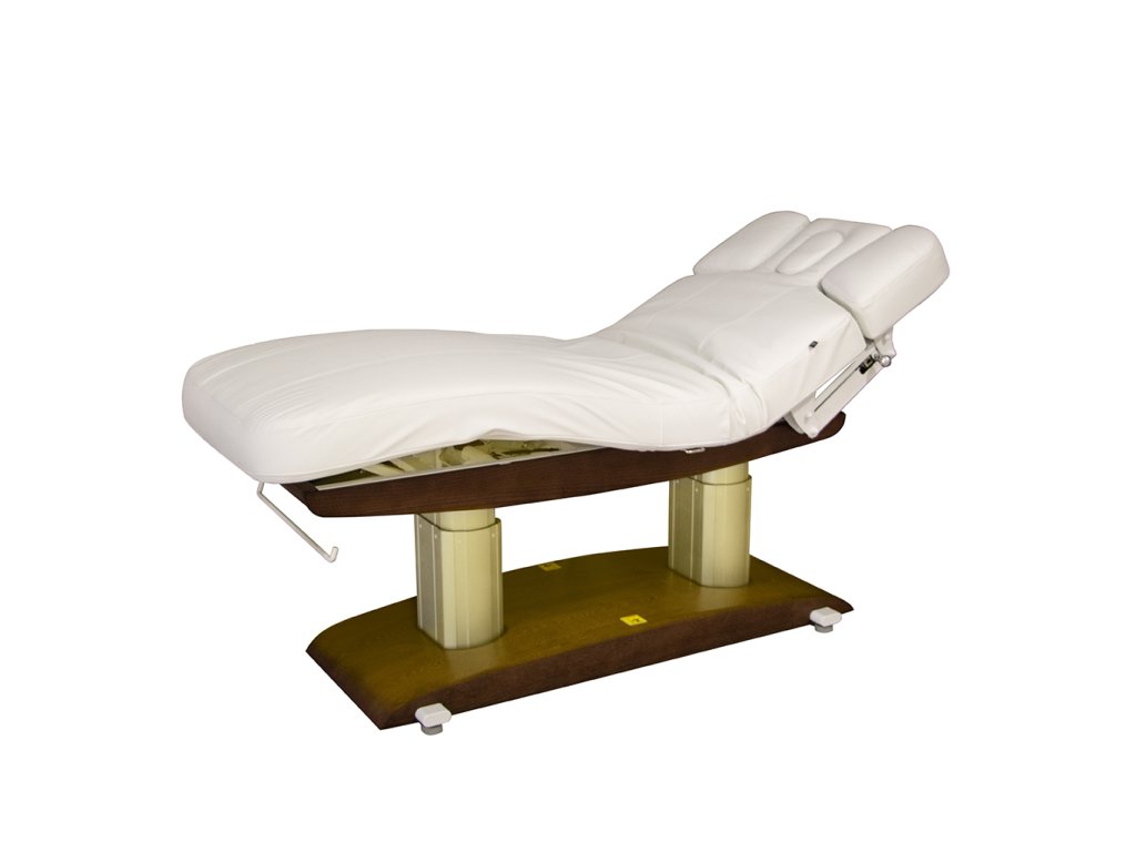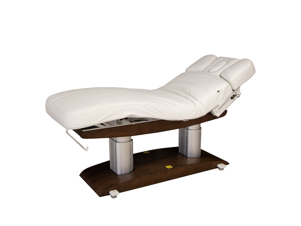 4 motoros SPA-ágy, ahol az ágy magassága, háttámlája, lábtartója és teljes dőlésszöge állítható. Állítható karfák és nyitható fejtámlák. Fémszerkezet természetes fa kivitelben. Ultrapuha, magas komfortfokozatú párnázat, kiváló minőségű fehér PU kárpitozással.