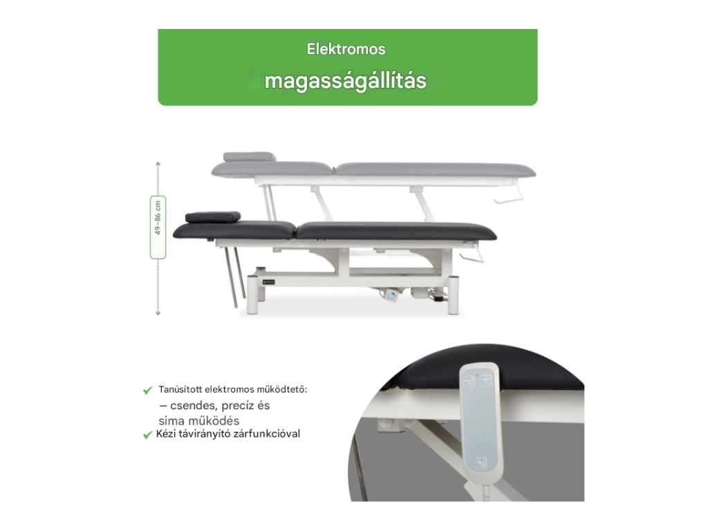 Optima terápiás asztal, elektromos magasságállítással és kézi távirányítóval – Satin Comfort k715 fekete