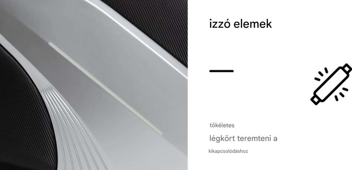 Az oldalsó panelek finom megvilágítása kiemeli a készülék modern dizájnját és eleganciát kölcsönöz. A finom fényszín nyugalmat és pihenést biztosít , miközben fokozza a környezet esztétikáját is. Stílusos dekoratív kiegészítő , amely vonzza a figyelmet és egyedi karaktert kölcsönöz a belső térnek.