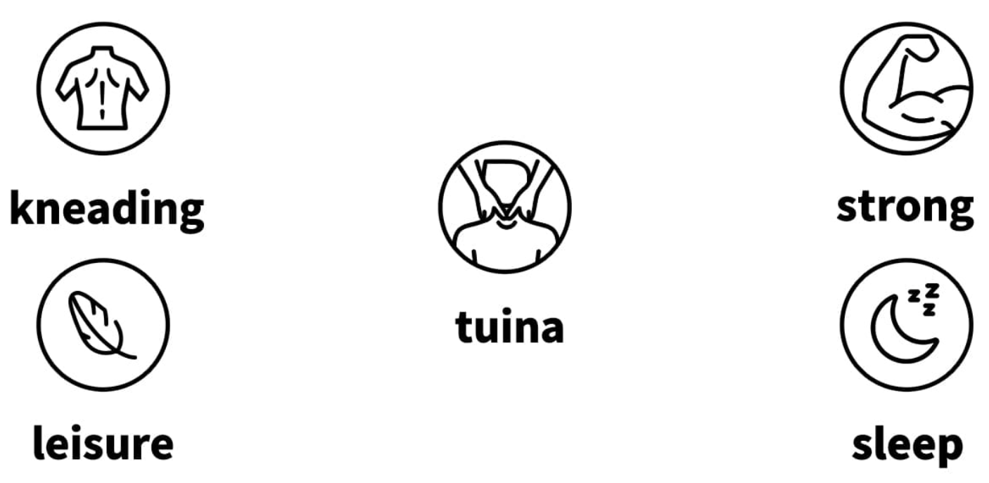 • Tuina (Tui Na) – Közepes intenzitású masszázs, amely a nyakra és a vállakra összpontosít. Támogatja az izmok regenerálódását, javítja a vérkeringést és elősegíti az elalvást.