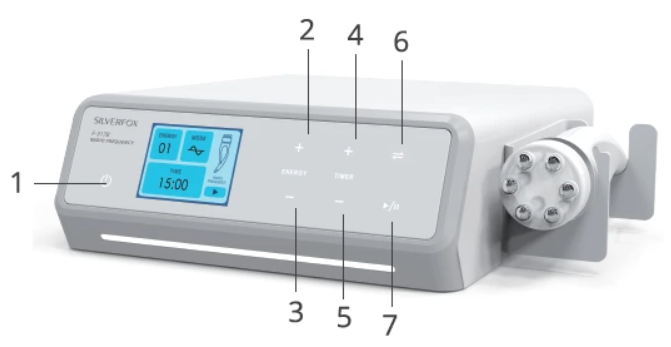 4. Nyomja meg a „Start”/„Szünet” gombot az RF szonda működésének elindításához. A teljesítményszint állítható, és az „Energia növelése/csökkentése” gombbal 1 és 10 között állítható be.