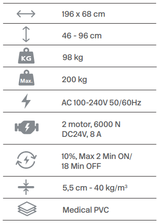 ‑ Öt testrészes elektromos fizioterápiás asztal.