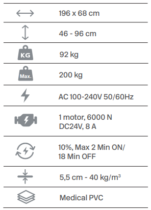 ‑ Állítható magasság 46 cm-től 96 cm-ig vízszintes helyzetben.