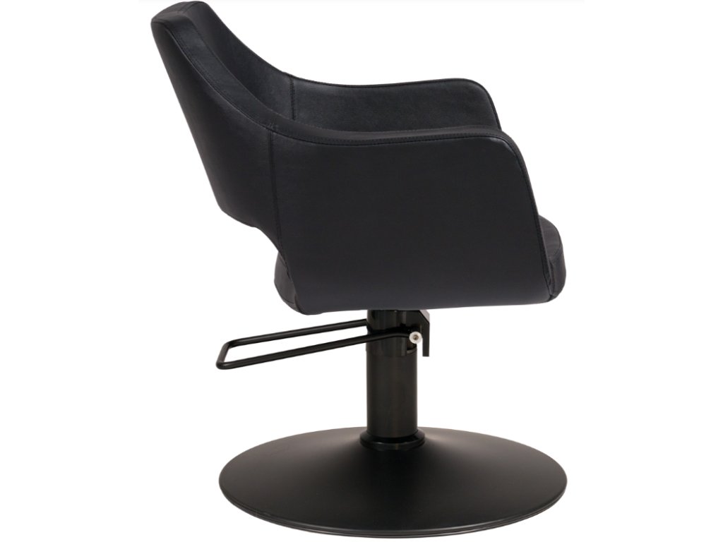 Kényelmes stílusú szék nagy sűrűségű poliuretán fröccsöntött habbal és fém belső szerkezettel. Krómozott alumínium fröccsöntött csillag talapzat. Zárható minőségi hidraulikus szivattyú fékkel. Fekete kárpitozás.